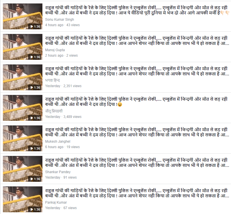 A video massively circulated on social media is being shared with the claim that the Delhi police halted an ambulance for Rahul Gandhi’s rally and the sick child who needed to get to the hospital lost her life. “राहुल गांधी की गाड़ियों के रैले के लिए दिल्ली पुलिस ने एम्बुलेंस रोकी….एम्बुलेंस में जिन्दगी और मौत से लड़ रही बच्ची थी .और अंत में बच्ची ने दम तोड़ दिया ! (The Delhi police halted an ambulance for Rahul Gandhi’s rally. For the child inside the ambulance, it was a matter of life and death. In the end, she died),” is the caption used to share the video, which shows a stationary ambulance in front of a police barricade, followed by a long stream of vehicles.