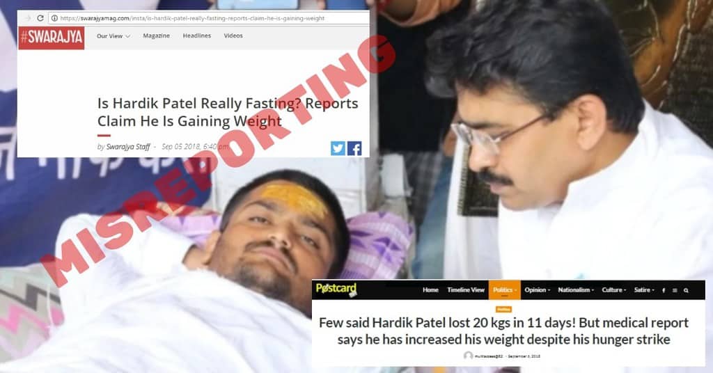 Misleading Reporting By Swarajya And Postcard News About Hardik Patel’s Weight Gain During Fast