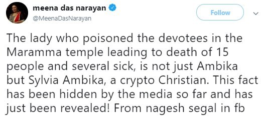 Over 15 people were killed in an incident of food poisoning at a temple in Chamarajanagar in Karnataka on December 17. The source of the poison was the prasada offered to the devotees of the temple. A section of right-wing supporters on social media have claimed that one of the accused in the case, Ambika is actually Sylvia Ambika and that she is a Christian.