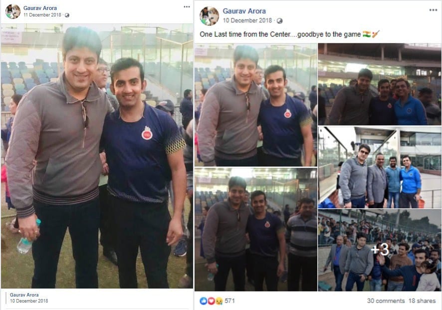 Alt News found that the man claimed to be Gambhir’s ‘duplicate’ has had a long association with the BJP candidate. The individual’s name is Gaurav Arora. We found multiple pictures and videos of Arora where he is flanked by Gautam Gambhir. These pictures date back to the time before Gambhir joined the Bharatiya Janata Party.