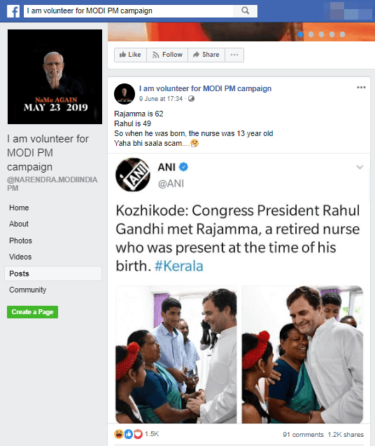A claim by a Twitter handle @MuralikrishnaE1 has garnered massive traction on social media. His tweet has hypothesized that Rajamma Vavathil, the nurse who was present during Congress President Rahul Gandhi’s birth, was only 13 years old at the time. According to his claim, the present age of Rajamma’s is 62 while Rahul is 49. The user took a jibe at Gandhi by tweeting, “Yaha bhi Saala Scam (There is a scam here as well -translated)”. The handle quote-tweeted a tweet by ANI which reported Rahul Gandhi’s meeting with Rajamma Vavathil during a 3-day visit to his new constituency Wayanad.