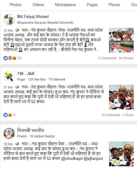 The above tweet has been posted with the words “नंदकुमार सिंह चौहान के बिगड़े बोल महिलाओं को फिर किया अपमानित” (Nandkumar Chauhan once again insults women- translation). The video has gone viral on Facebook where several individual users have uploaded it on their timelines, with an altered message.