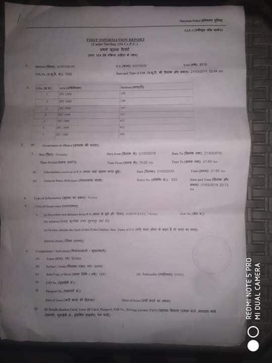 The report added that the police had registered a case under IPC sections 148 (rioting), 149 (unlawful assembly), 307 (attempt to murder), 323 (voluntarily causing hurt), 427 (mischief causing damage to the amount of fifty rupees), 452 (house trespass), and 506 (criminal intimidation).