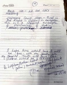“Sometimes I ask myself, am I really guilty? The answer pops out from the core of my heart. No, no. A big no,” he writes in the letter. [The text has been edited for clarity.]