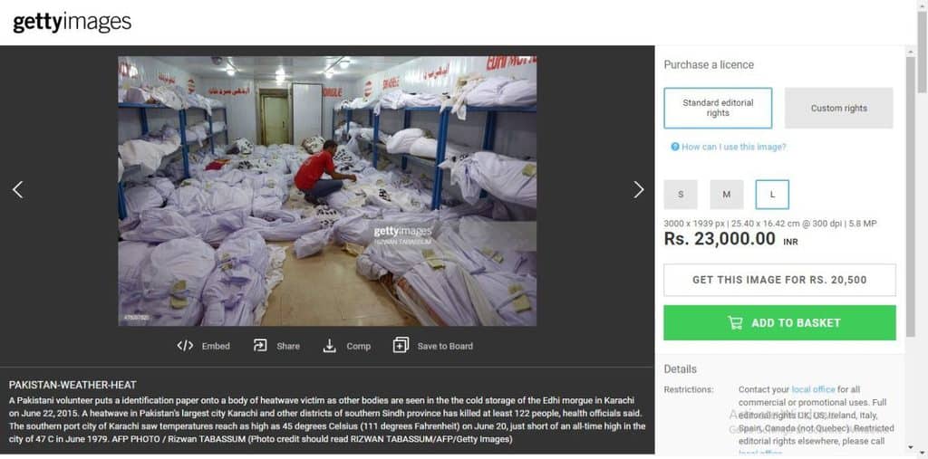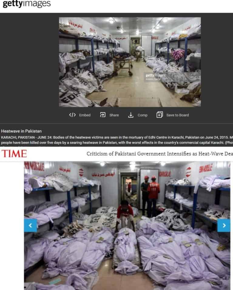 These images are also of the 2015 heatwave in Pakistan. While the image on the left was found on TIME magazine, the one on the right was traced back to Getty Images
