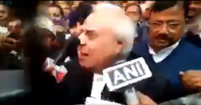 A video of Congress leader and senior lawyer Kapil Sibal has been shared widely on Facebook and Twitter along with the message that he was slapped outside the court premises when he was speaking to media persons.