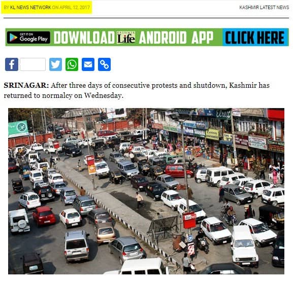 Alt News found that the above photograph had appeared in an article on Daily Excelsior, a J&K daily, in November 2016. The report is from Srinagar.