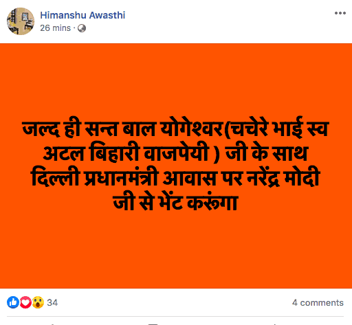Awasthi posted a picture of the meeting on his Facebook profile.