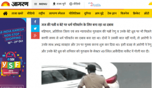 Immediately after establishing a link between Mahipal and his ‘Christian’ leaning, Dainik Jagran connected it to the murder. Umbrellaed under the sub-heading “was pressurising Judge’s wife and son to religiously convert”, the report narrated that Judge Kant’s wife Ritu and son Dhurv opposed to Mahipal’s religious impositions which led him to behave indecently with them and get fits of rage. “इसी वजह से आरोपी ने रेणु और उनके बेटे ध्रुव को शनिवार को गुरुग्राम के सेक्टर 49 स्थित आर्केडिया मार्केट में गोली मार दी। (For this reason the accused shot at Renu (Ritu) and her son Dhruv on Saturday at Arcadia market in Gurugram sector 49),” declared Dainik Jagran.