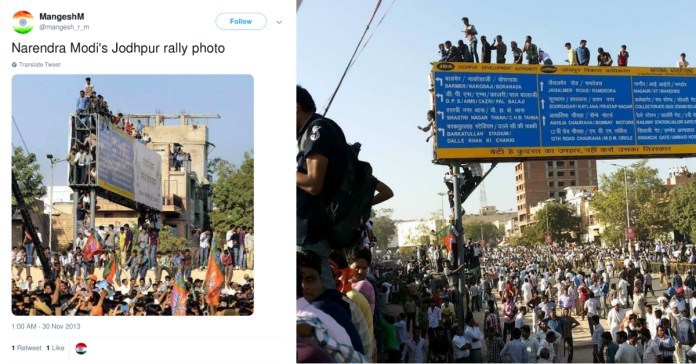 One more image from a different angle was also tweeted by several individual users (1, 2) claiming it to be of PM Modi’s rally in Jodhpur on November 29 & 30, 2013.