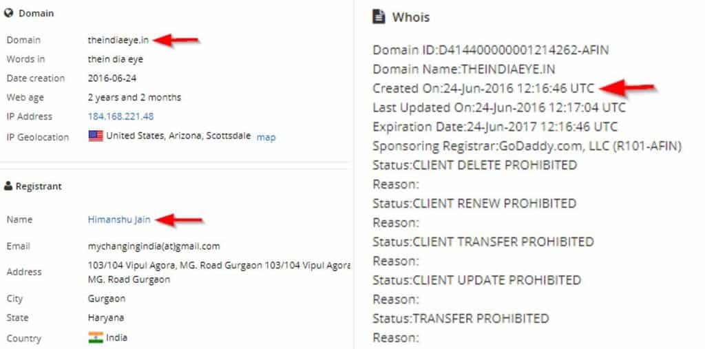 Furthermore, we also found that his company’s servers were used to host theindiaeye.com. However, right after our conversation with Himanshu Jain, questioning him about the apparent connection, the IP addresses of theindiaeye.com were changed.