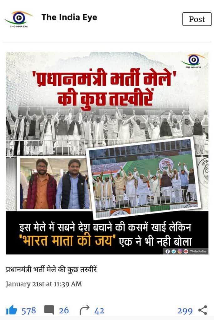 The above example is one among a plethora of misleading posts circulated by The India Eye.