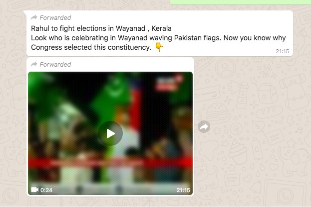 The above message has been shared in the aftermath of speculation that Congress President Rahul Gandhi may contest from Wayanad, Kerala in the upcoming Lok Sabha election. It has been shared along with a video which shows green-coloured flags bearing a crescent, waved in a street rally. The video is 24 seconds long. The logo of News18 can be seen on the top right corner of the video clip.