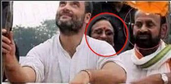 We did a YouTube search with the keywords, “Rita Bahuguna Joshi Rahul Gandhi rally”, and found a video of a Kisan Yatra rally in Congress president Rahul Gandhi and this unidentified person had participated.
