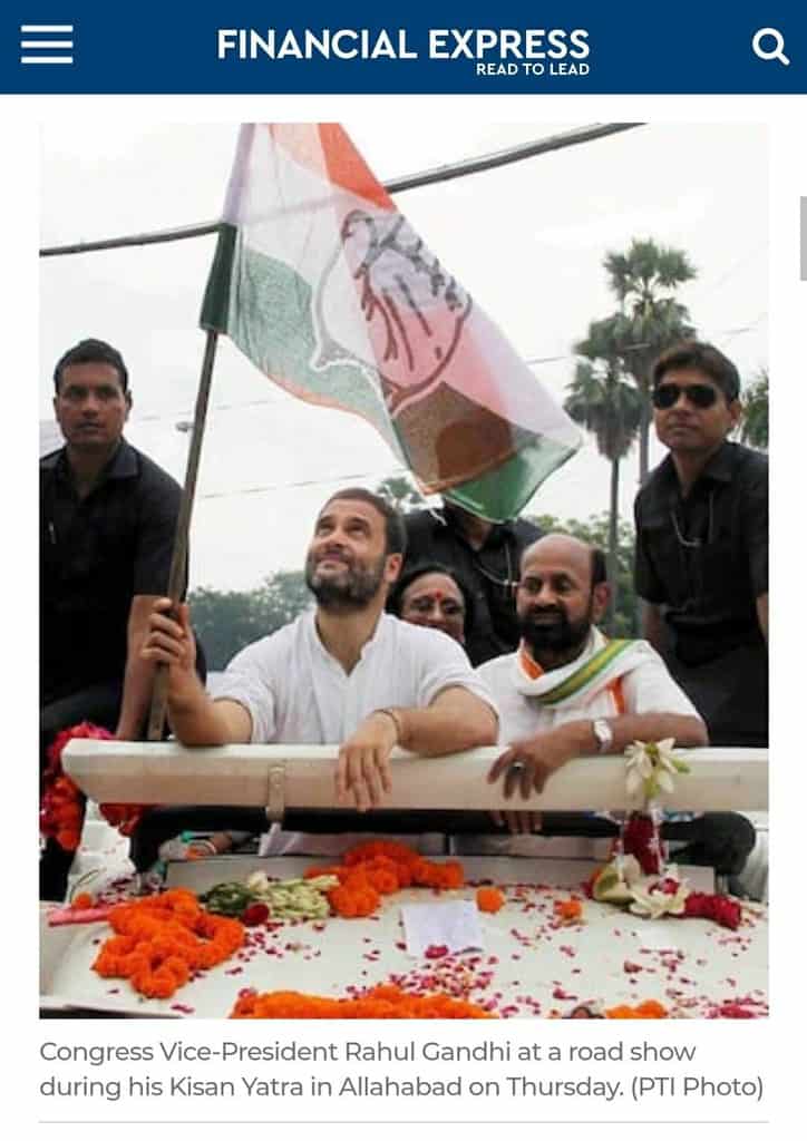 We also found the same image posted in an article, published by The Financial Express on September 16, 2018. This photograph pertains to the Kisan Yatra rally organized by the Congress party. A portion of the image was mischievously cropped to suggest that the leader was seen with the accused who slapped Hardik Patel in Surendranagar.