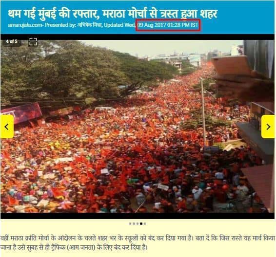 Using the Google reverse image search tool, we searched for the first image and came across the original image with the words ‘Maratha Kranti Morcha’.