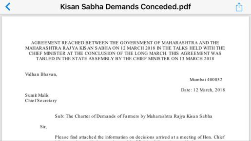 Read the agreement reached between the Government of Maharashtra and the Maharashtra Rajya Kisan Sabha.