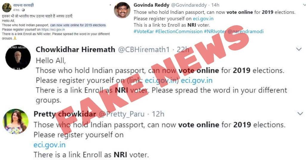 The Election Commission of India has specified that an overseas Indian voter has to be physically present at the polling booth with his/her Indian passport.
