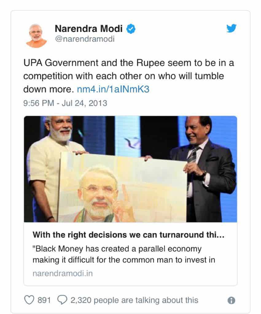 In 2013, even Modi had said the fall in the value of rupee is not because of its ‘size’ but because of people sitting in Delhi who are busy in corruption.