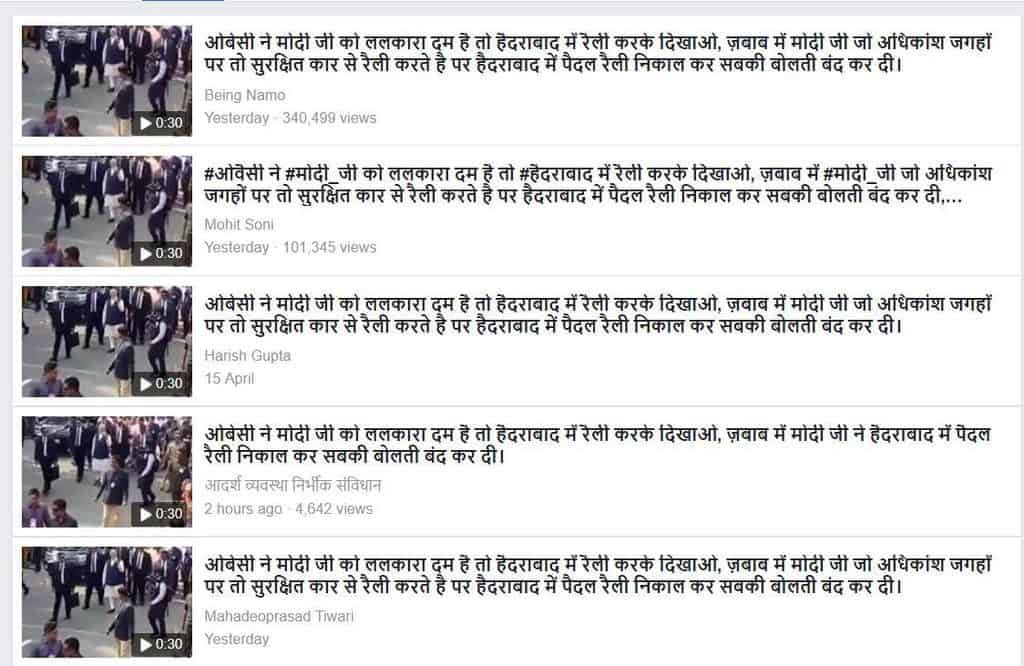 The above tweet by a user Ashok65 Chowkidar has been retweeted almost 1400 times since it was tweeted on April 16. A facebook page Being Namo has posted this video on April 16, it received over 342,000 views.