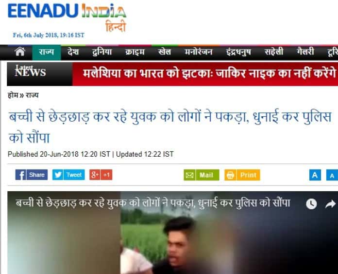 Moreover, an article published in Eenadu India on June 20, 2018 reported, “Actually, the incident is from the village of Alinagar in Jinjhana, where a woman went to the forest to take grass. Accompanying her was an 8-year-old daughter. According to the information, the mother got busy cutting grass while the child was playing on the nearby road. At the same time, a young man from Tana village of Garhi Pakhta, who was passing through the fields came there inebriated and nabbed the child with a bad intention (translated).